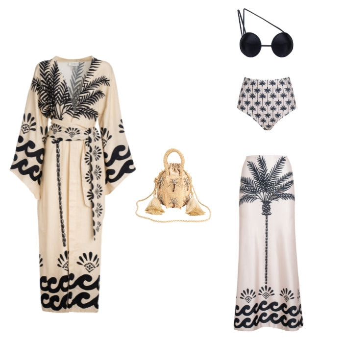 KIMONO MAXI LINO PALM IVORY- BLACK